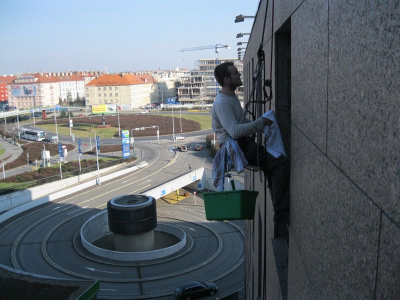 Mytí oken na výškových budovách provádíme řadu let a jedná se o jednu z nejčastěji poskytovaných služeb našim klientům. Využíváme především klasické horolezecké techniky, která je levnější, rychlejší a také často daleko účinnější než klasické plošiny, které mohou mít problém s dostupností.